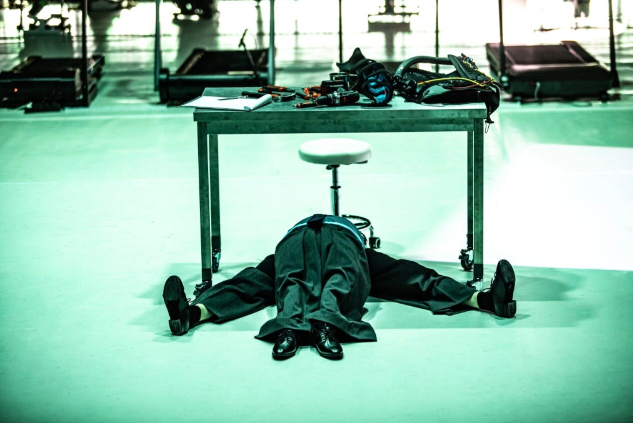 Od pierwszych chwil spektakl wprowadza widza w przestrzeń zdominowaną przez maszyny i niezrozumiałą technologie. Sceniczna rzeczywistość wrocławskiej pantomimy pulsuje mechanicznym rytmem, a towarzyszące jej dźwięki, od szpitalnego pikania po chłodne, robotyczne brzmienia, budują atmosferę napięcia i transu. Reżyserka konstruuje widowisko jak organizm, ponieważ poszczególne sceny, choć pozornie odrębne, współdziałają jak jeden wielki mechanizm, w którym jednostka staje się trybem w większej strukturze. Rodzi się pytanie, czy tą jednostką nie są już tylko aktorzy, ale stają się nią także widzowie?