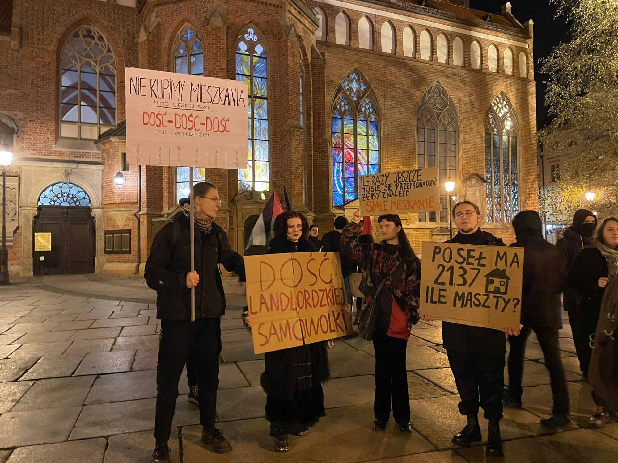 To już kolejny taki protest studentów. Tym razem przeprowadzony z inicjatywy Wrocławskich Rewolucjonistek – grupy, która odpowiadała za duży październikowy protest solidarnościowy. Za sprawą aktywistek przez otaczające Rynek ulice przeszedł kilkutysięczny marsz wspierający Palestynę. Należąca do społeczności Nikola Michalska, postuluje w imieniu strajkujących o zwiększenie podatku katastralnego i regulację rosnących czynszów.