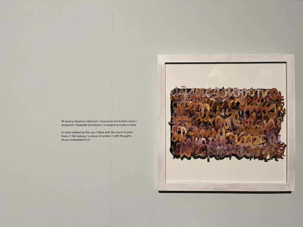 Pierwszą wystawą czasową jaką polecamy Waszej uwadze jest wystawa czasowa prac artystki Anny Szpakowskiej- Kujawskiej. Wieloświat jako pojęcie oznacza hipotetyczny zbiór wszelkich możliwych wszechświatów, zawierający w sobie wszystko inne. Tytuł wystawy ma odzwierciedlać zatem zbiór dzieł artystki i ich niezwykłą różnorodność, która jednocześnie zachowuje wewnętrzną spójność i całość. Poprzez wykorzystywanie rozmaitych technik i mediów Anna Szpakowska- Kujawska tworzy nie tylko z zakresu malarstwa, ale też ceramikę, rysunki, asamblaże i kolaże. Artystka w swoich dziełach także posiłkuje się słowem pisanym. Przykładem czego może być kolaż W żywicę stopiona.