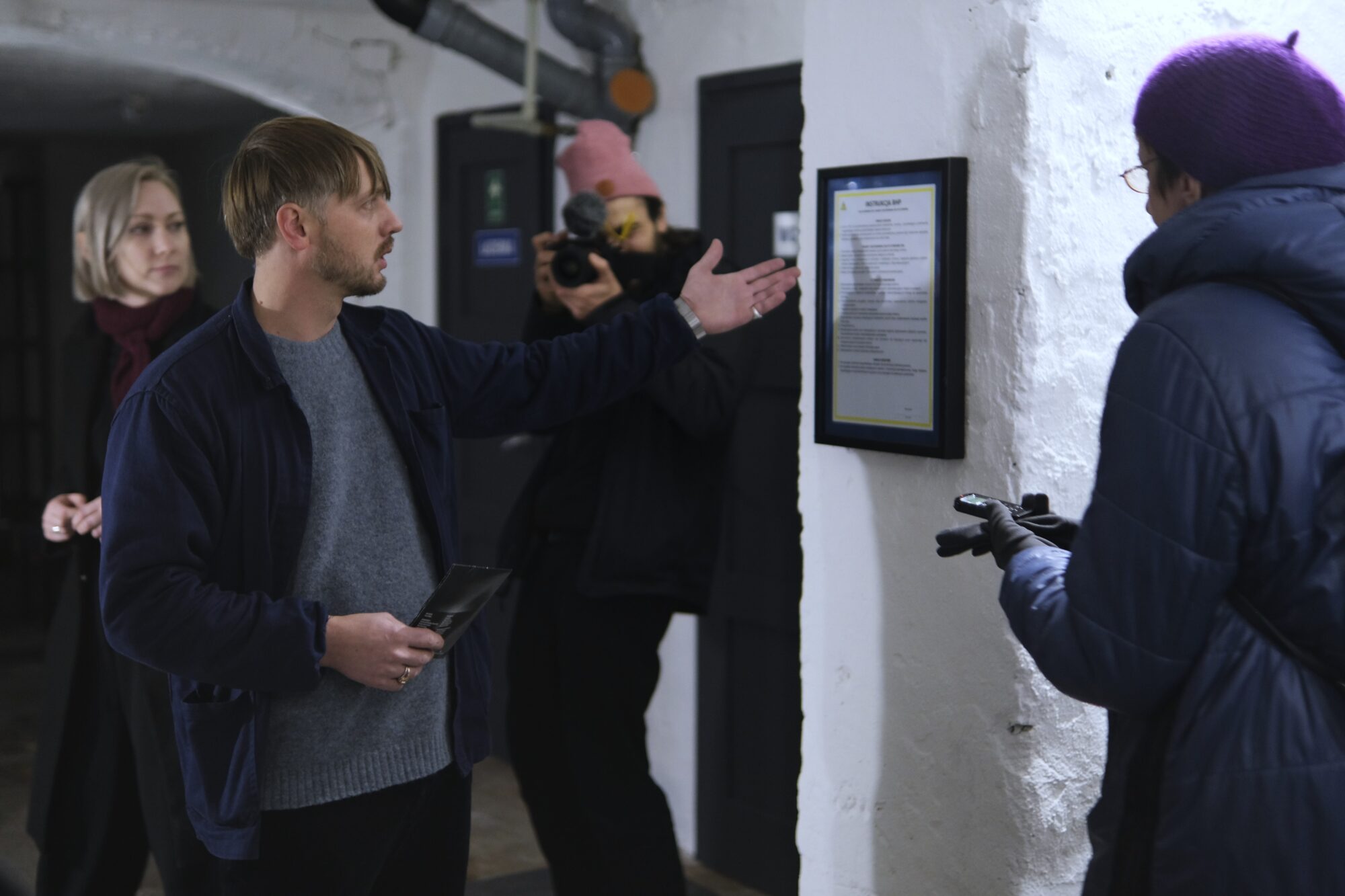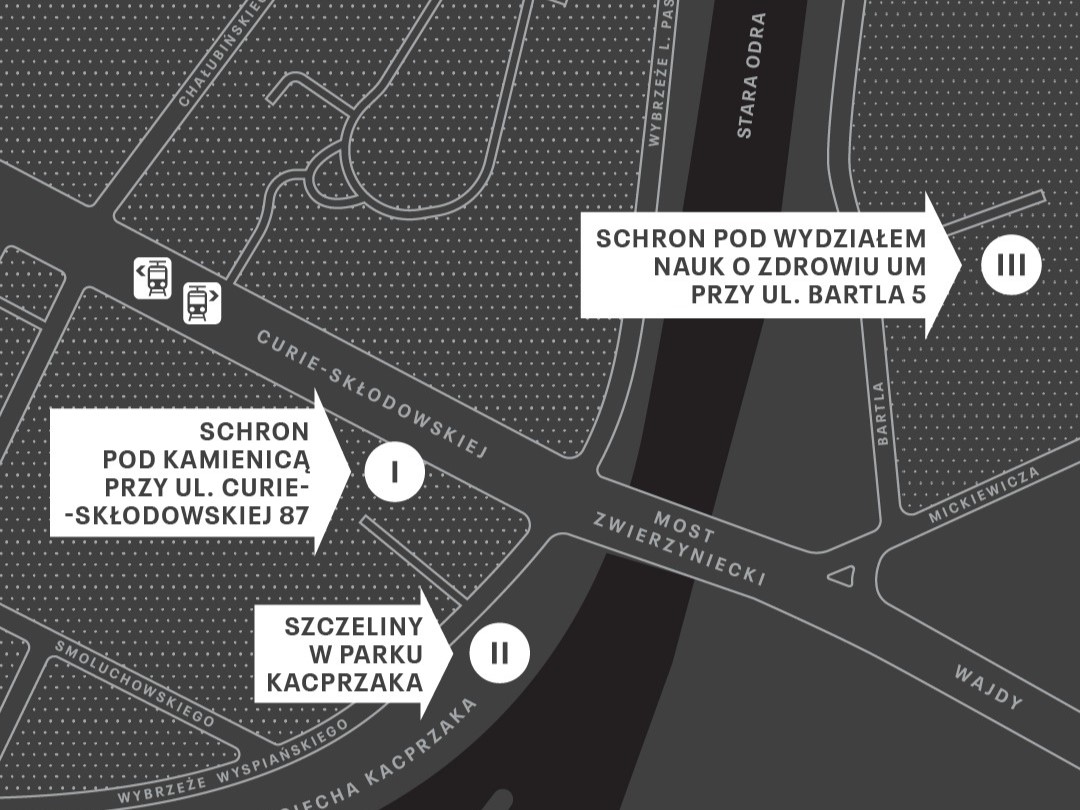 Ostatni punkt wystawy to schron znajdujący się pod Uniwersytetem Medycznym. W przeciwieństwie do pierwszego schronienia – nie został odrenowany. Oglądaliśmy go w stanie zastałym. Tymi słowami artysta rozpoczął oprowadzanie po lokacji: