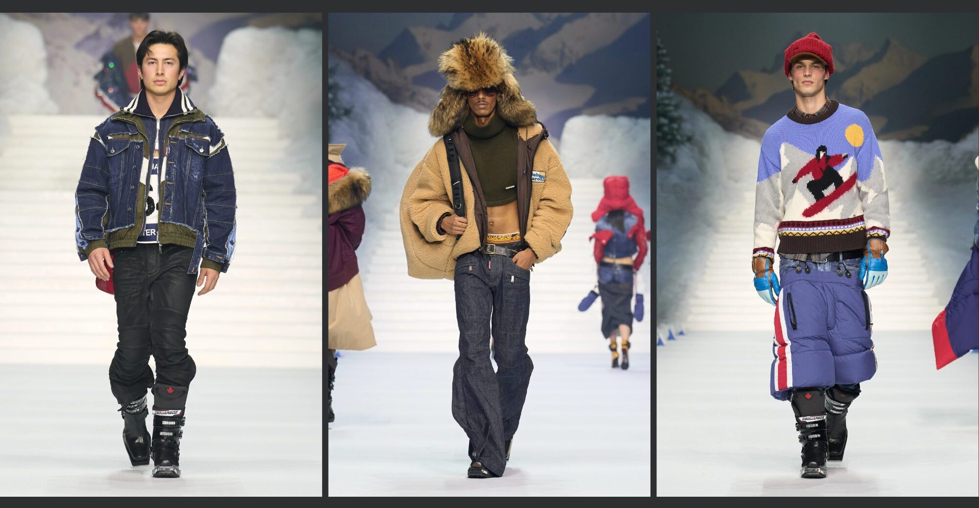 Mimo, że Mediolan jest uważany za najbardziej stonowaną ze stolic mody, to właśnie tam miała debiut kolorowa, jak i kampowa kolekcja AW26 od DSquared2. Tegoroczne kreacje wyglądały niczym wyciągnięte prosto ze stoku – kurtki puchowe, buty narciarskie na obcasie czy długie kożuchy, wpisują się zarówno idealnie w styczniowy klimat, ale też stanowią ukłon do nadchodzących Igrzysk Olimpijskich w Mediolanie i Cortinie. Bracia Caten idealnie uchwycili połączenie nowoczesnej mody i stylu apres-ski, zwłaszcza tego z lat 70.