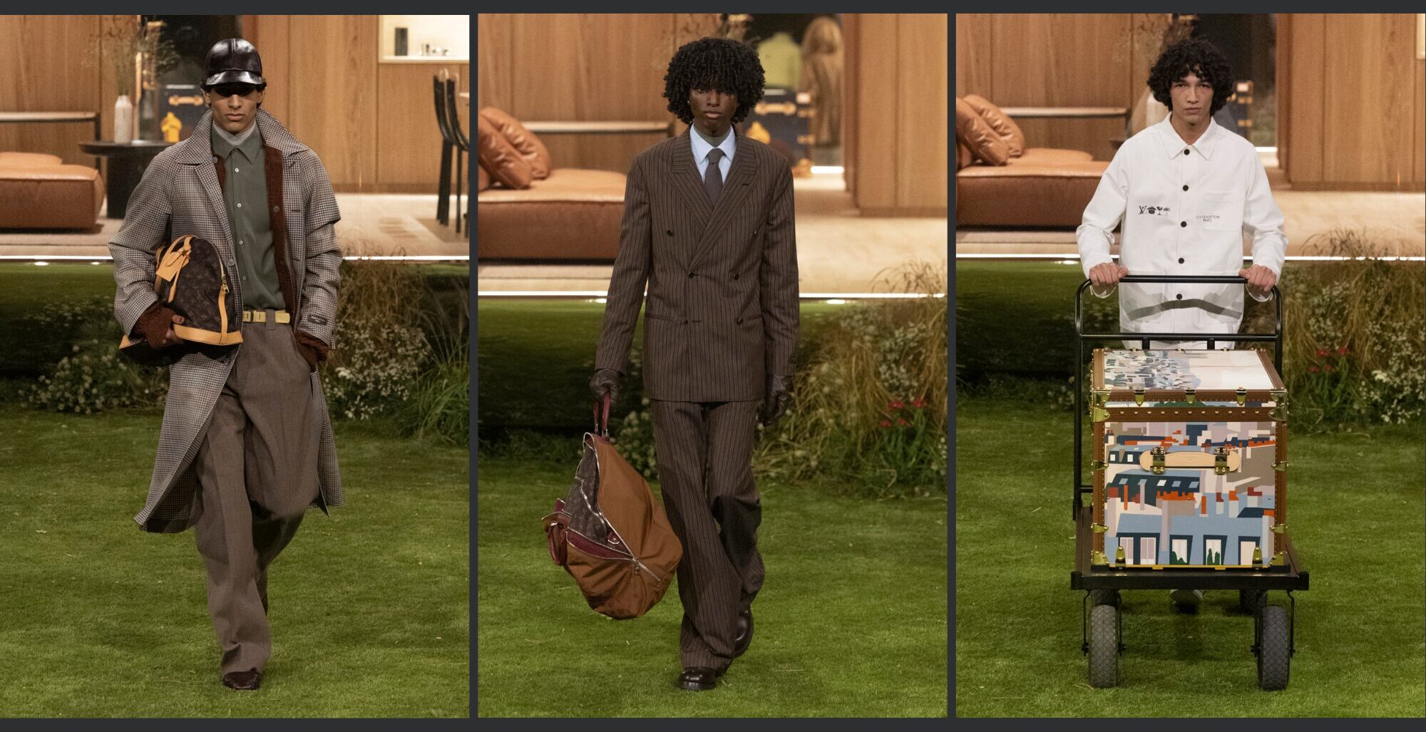 W odróżnieniu od krzykliwej kolekcji DSquared2, tym razem już w Paryżu, mamy stonowane sylwetki zaprojektowane przez Pharrella Williamsa dla Louis Vuitton. Sama nazwa kolekcji, Timeless, wskazuje na klasyczne i bardziej zachowawcze kreacje. Jednak nie tylko one zwracały na siebie uwagę, sama aranżacja wybiegu – od muzyki przez specjalnie wybudowany dom, każdy element idealnie wpisywał się w estetykę pokazu.